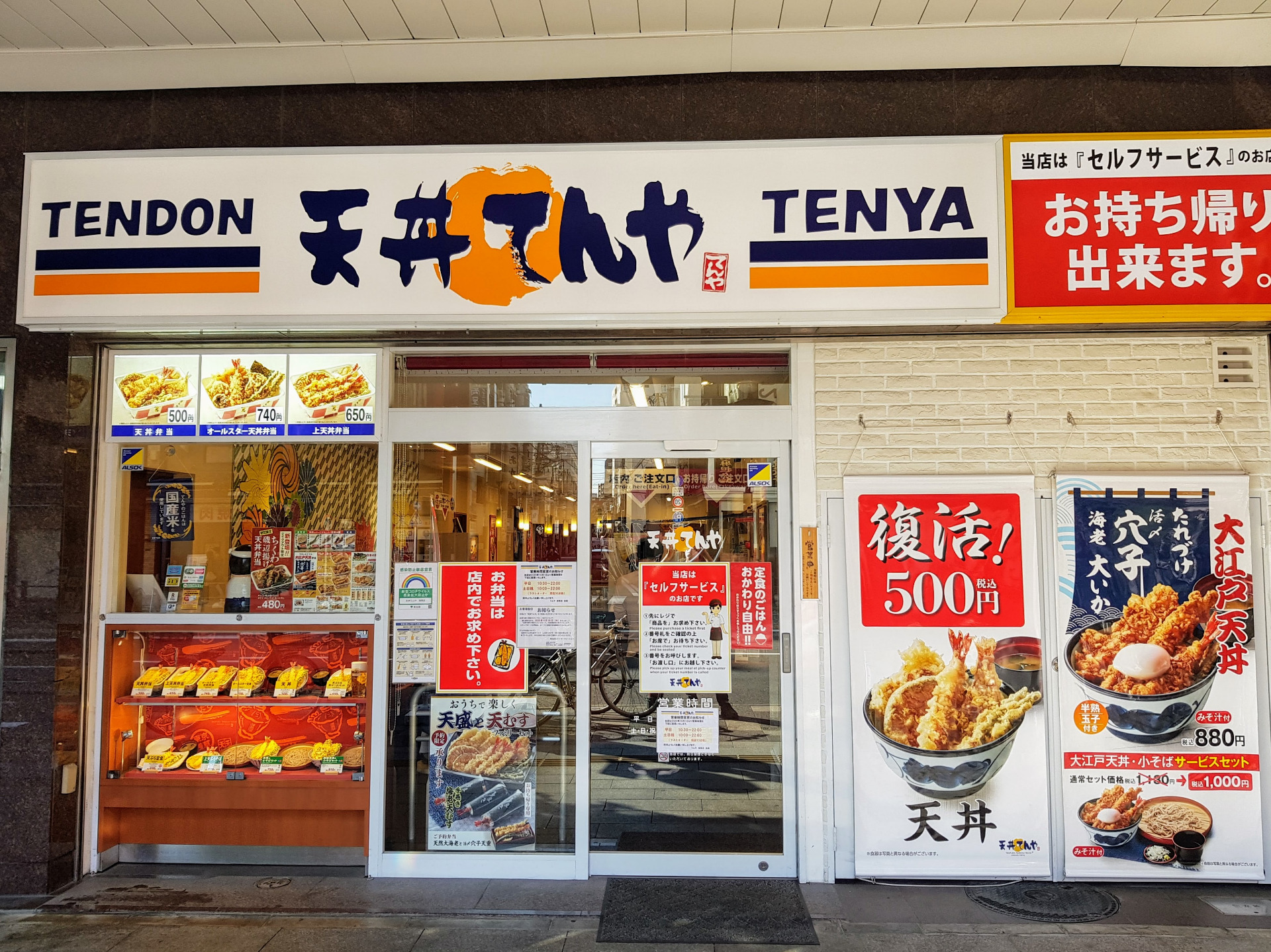 Es uno de nuestros fast food favoritos de todo Japón. La especialidad de la casa es tendon, un bowl de arroz con tempura (de verdura y marisco). El bowl normal, que incluye sopa de miso y bebida de te frío, cuesta 540¥ (4,30€), y hay tempura de gamba, sepia, pescado, calabaza y judía verde. La salsita que acompaña el plato (salsa tare) es deliciosa y tiene un punto dulce que nos encanta